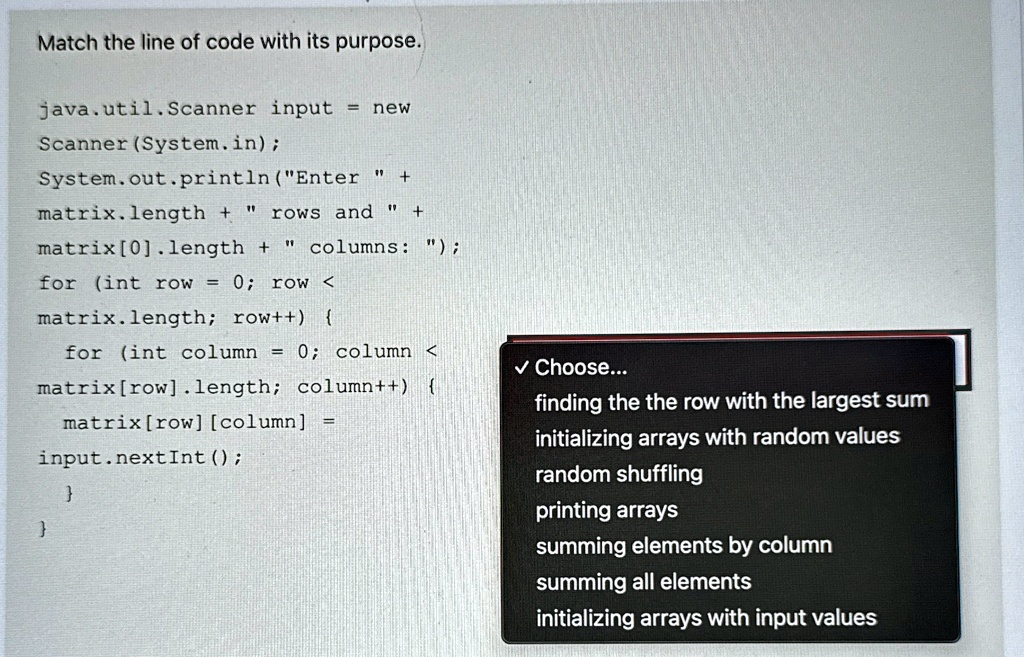 [GET ANSWER] match the line of code with its purpose javautilscanner ...