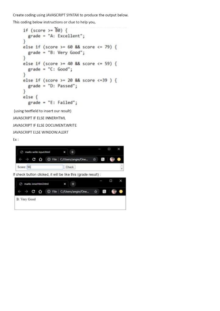 Solved Create coding using JAVASCRIPT SYNTAX to produce the | Chegg.com
