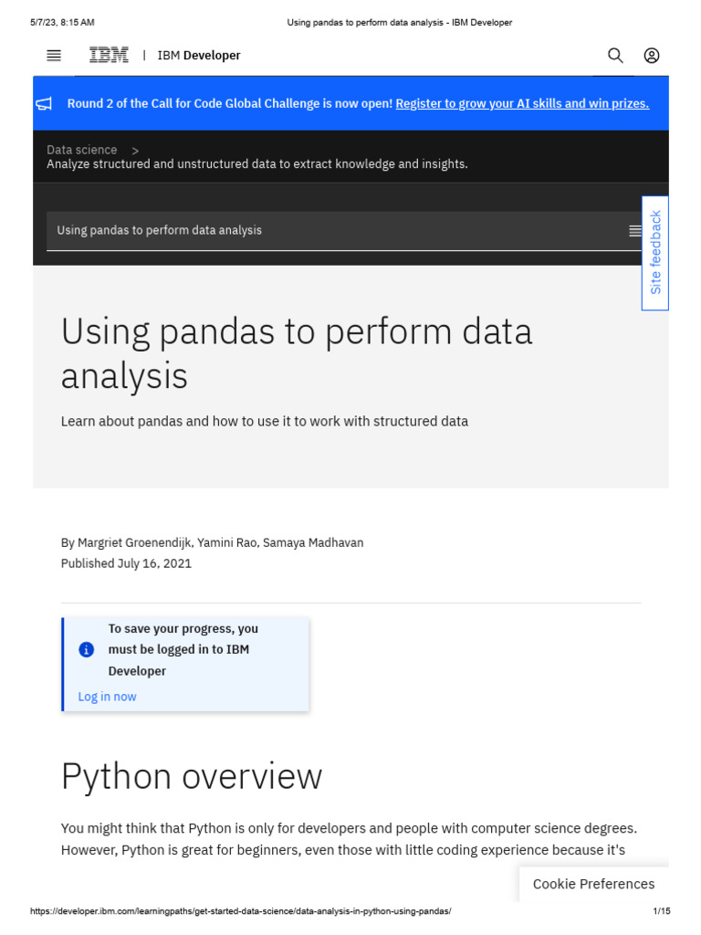 Using Pandas to Perform Data Analysis - IBM Developer | PDF | Data ...