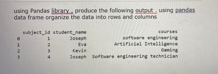 Solved using Pandas library, produce the following output. | Chegg.com
