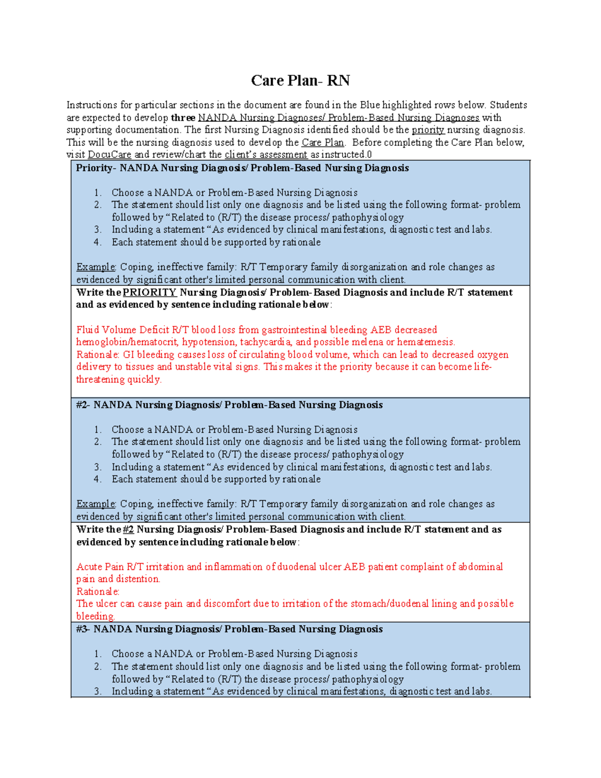 Care Plan for GI Bleed: NANDA Nursing Diagnoses & Interventions - Studocu
