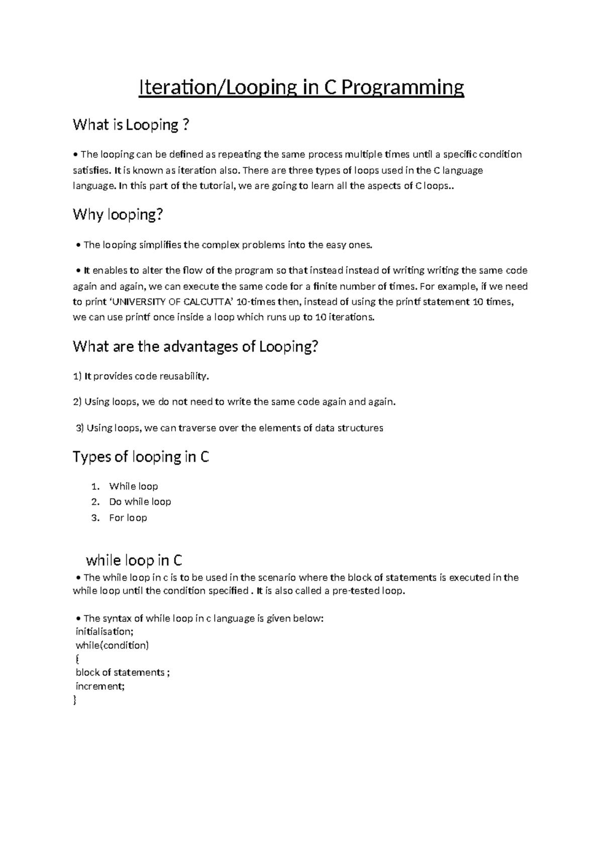 ?loop in C ?short Notes | PDF