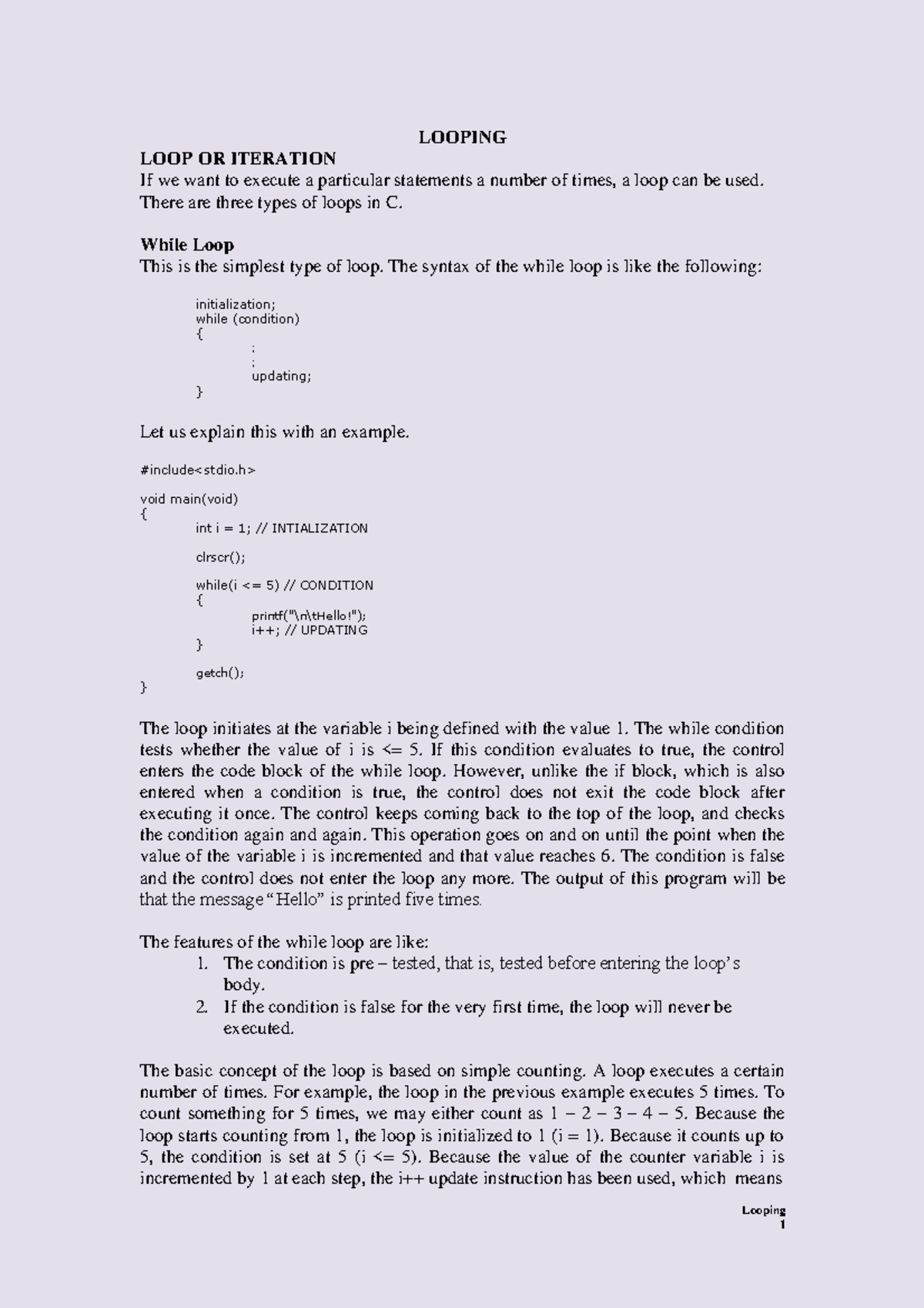 C Programming: Looping Concepts and Examples - Class Notes - Studocu