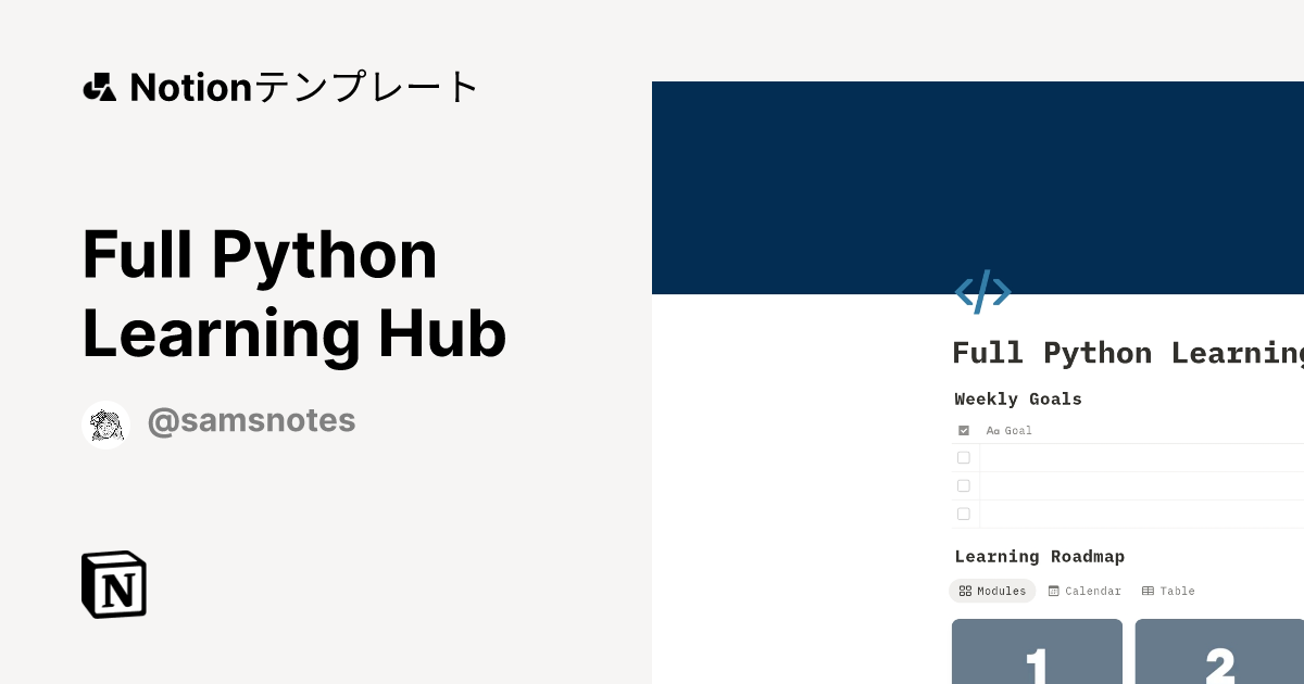 Full Python Learning Hubテンプレート・作成者:Sam's Notes | Notion (ノーション)マーケットプレイス