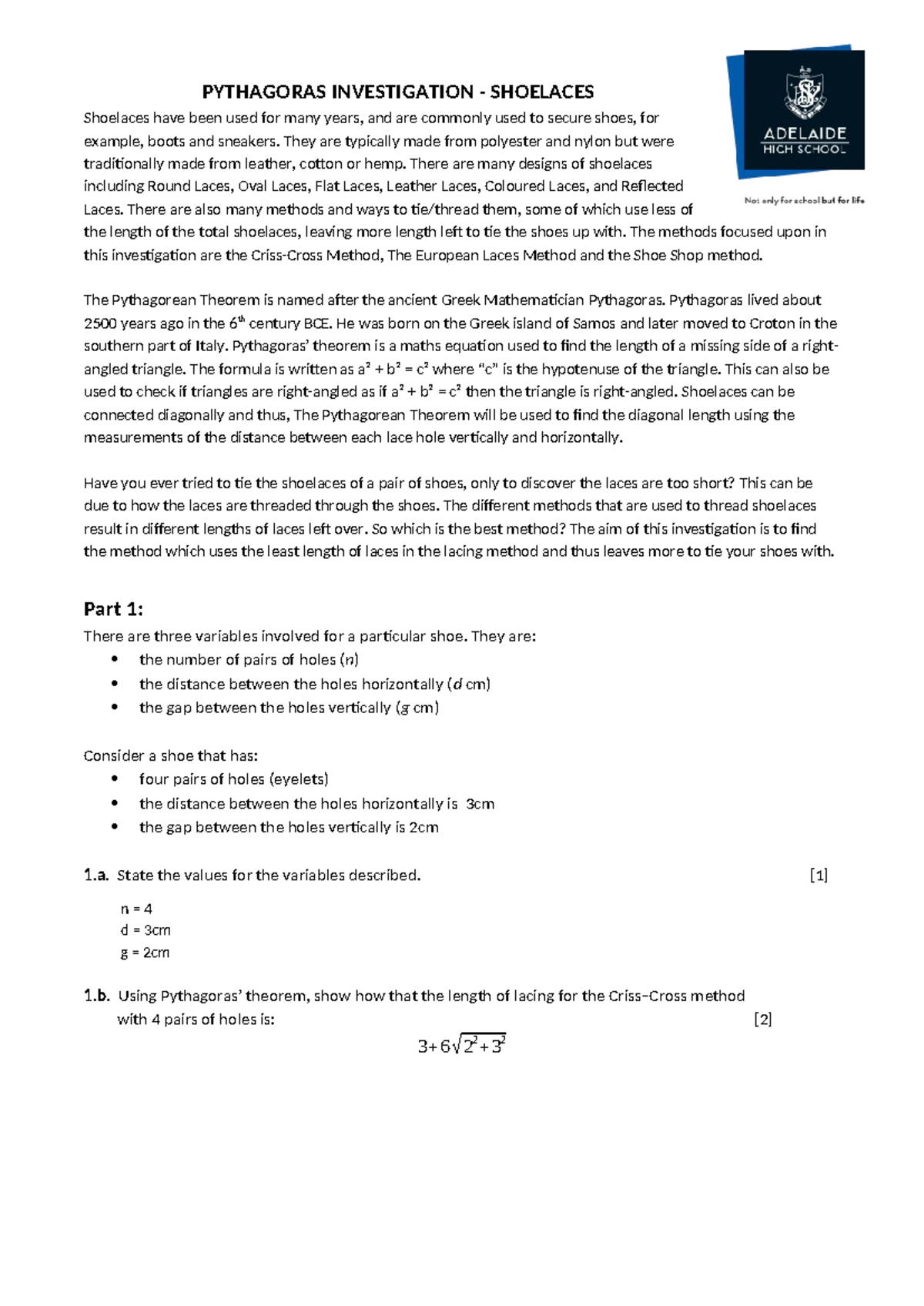 Pythagorean Theorem Investigation on Shoelaces Methods (MATH101) - Studocu