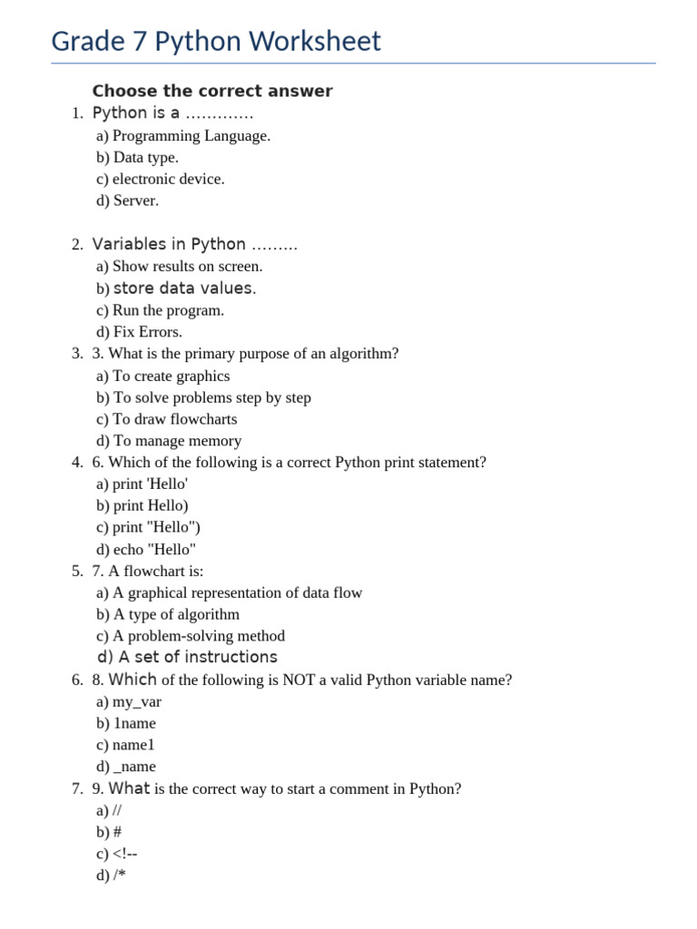 Answer Key Python Class 7 | PDF | Variable (Computer Science ...