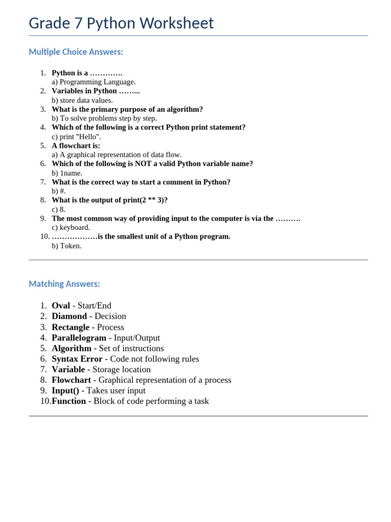 Grade 7 Test 2 Worksheet Answers | PDF | Python (Programming Language ...