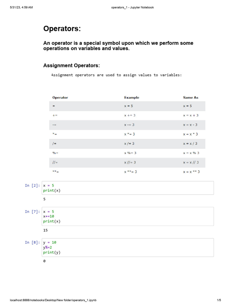 Based on this image's title: “11 - Python Operators - Jupyter Notebook - Operator Example Same As = x ...”