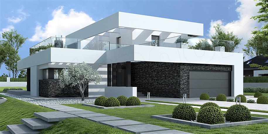 Senator II. Dom piętrowy z płaskim dachem i 2-stanowiskowym garażem w ...