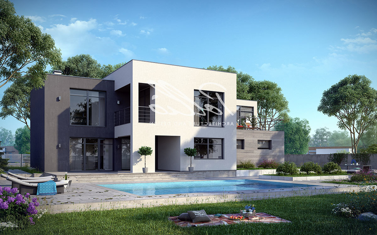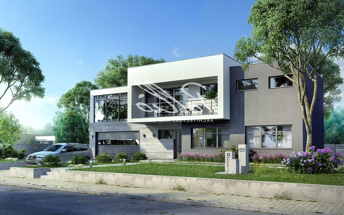 Mājas dizains Zx214 Moderna, divstāvu māja ar plakanu jumtu - Zx214
