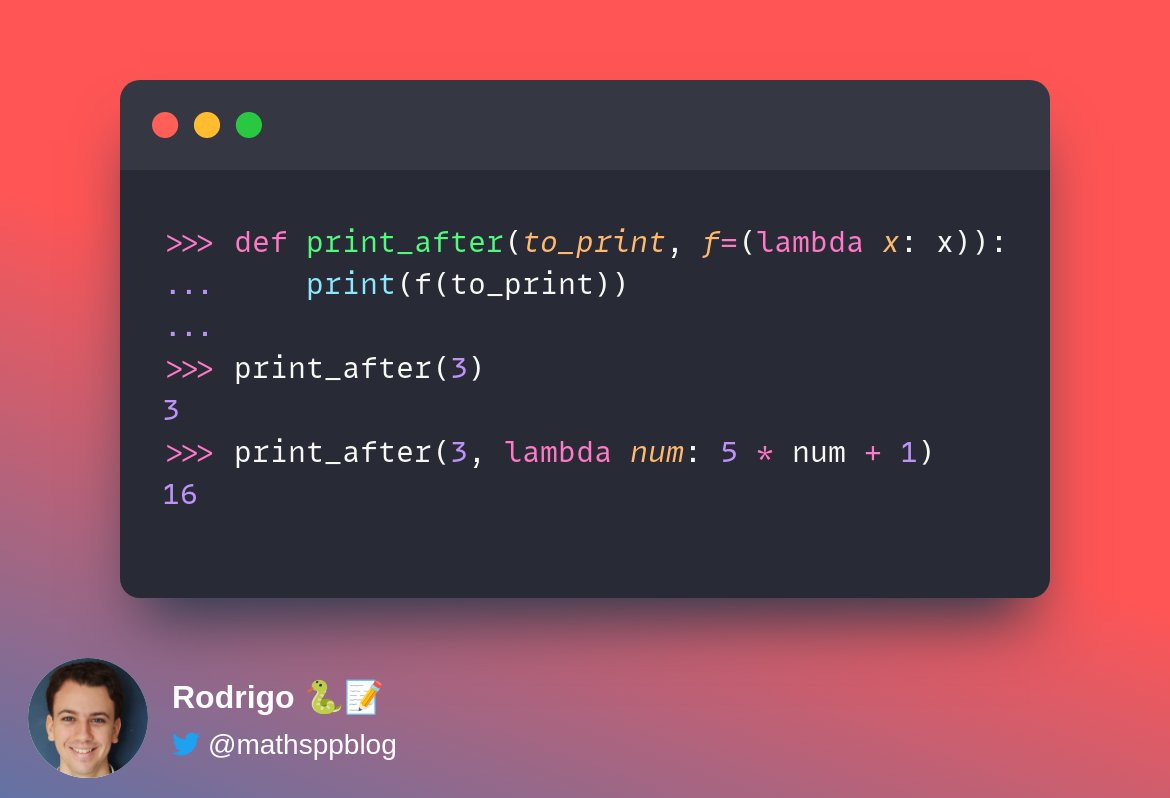 Rodrigo 🐍📝 on Twitter: "Did you know you can set a default argument to ...