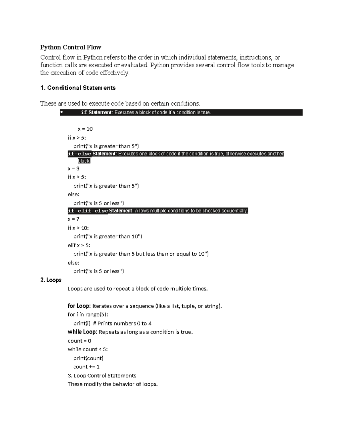 Python Control Flow: Conditional Statements, Loops & More - Studocu
