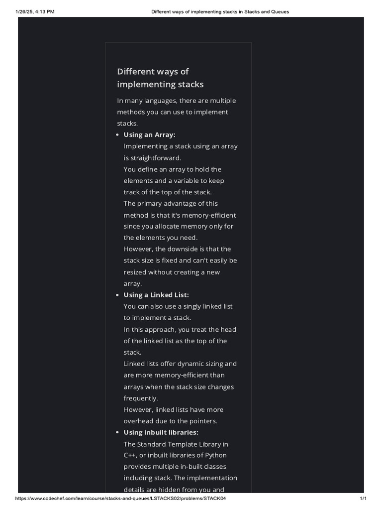 Different Ways of Implementing Stacks in Stacks and Queues | PDF ...