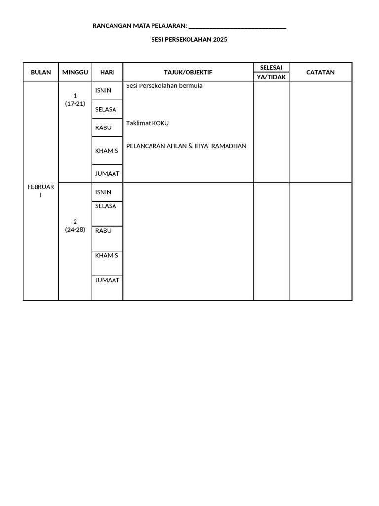 Templat RPH 2025 | PDF