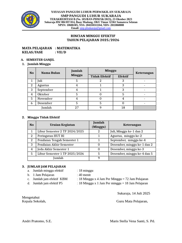 Rincian Pekan Efektif Matematika Kelas VIII | PDF