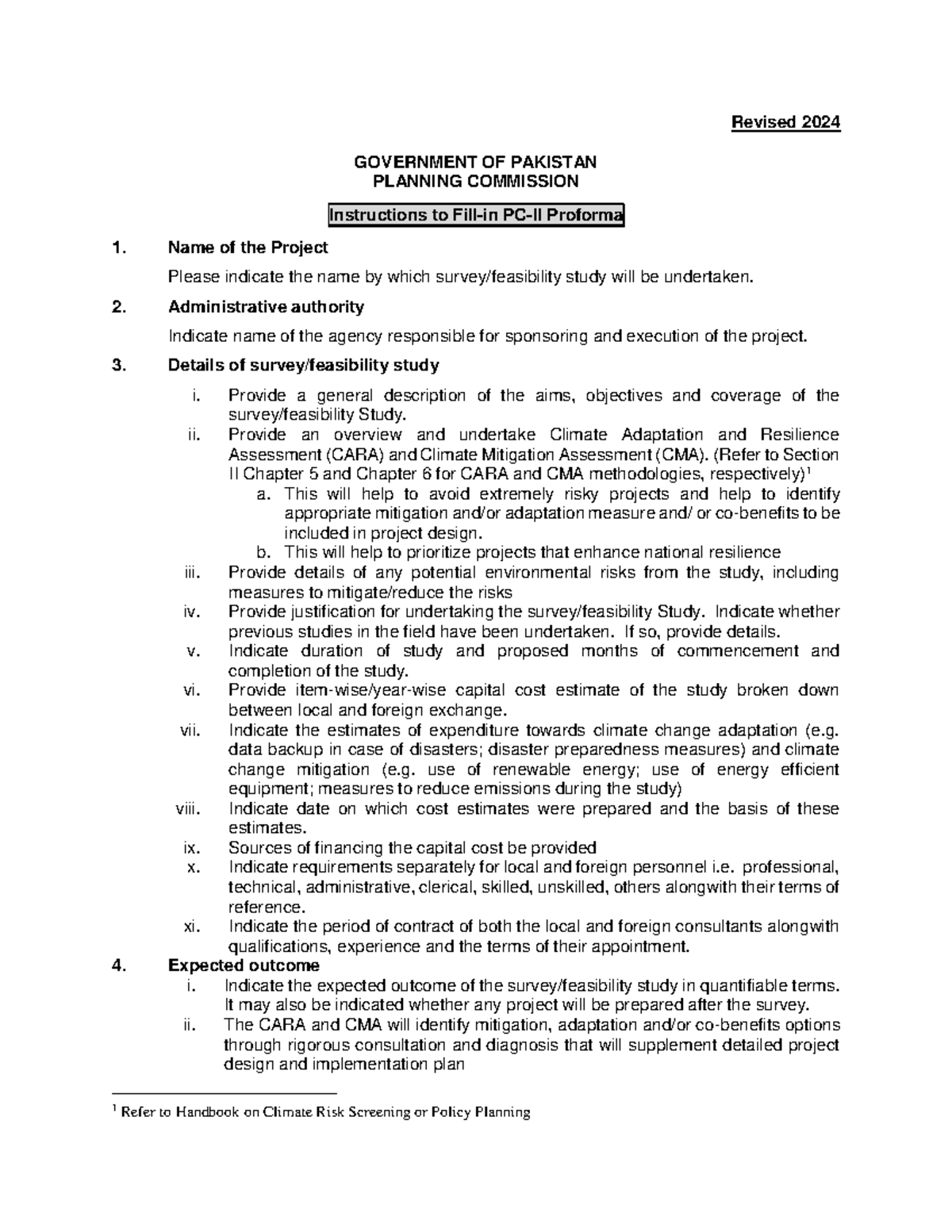Revised 2024 PC II Proforma for Development Projects: Technical ...