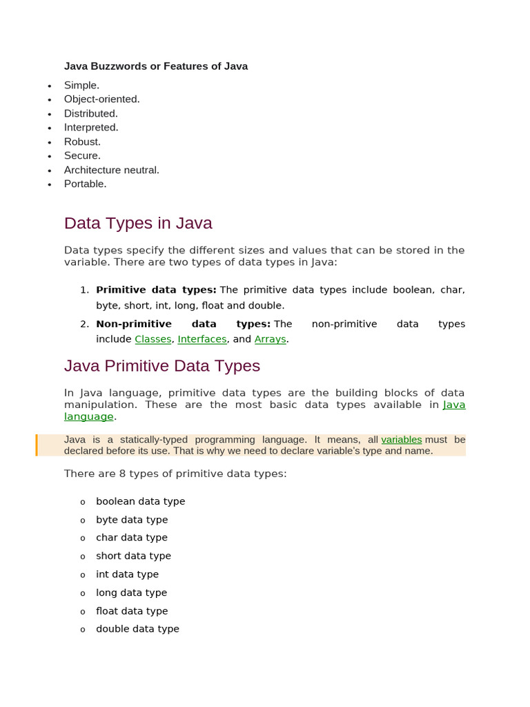 SOLUTION: Java lecture 2 pdf notes (Variables & Data types) || Core ...
