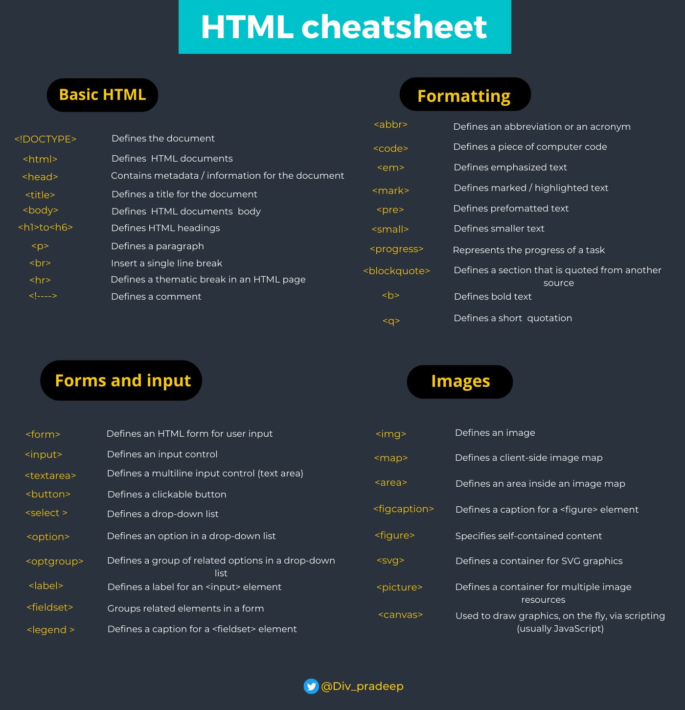 Pradeep Pandey on Twitter: "⚡Ultimate HTML CheatSheet for Web ...