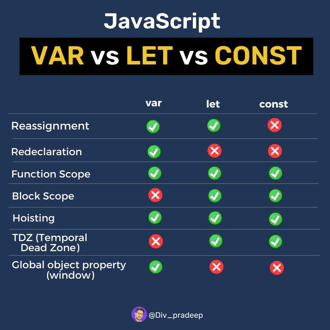 Pradeep Pandey on Twitter: "How var, let, and const differ: ↓⚡ https ...