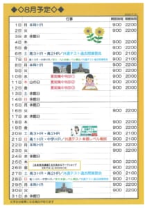 校舎スケジュール8月版 – 東進衛星予備校 大牟田有明町校/大牟田の大学受験予備校・学習塾