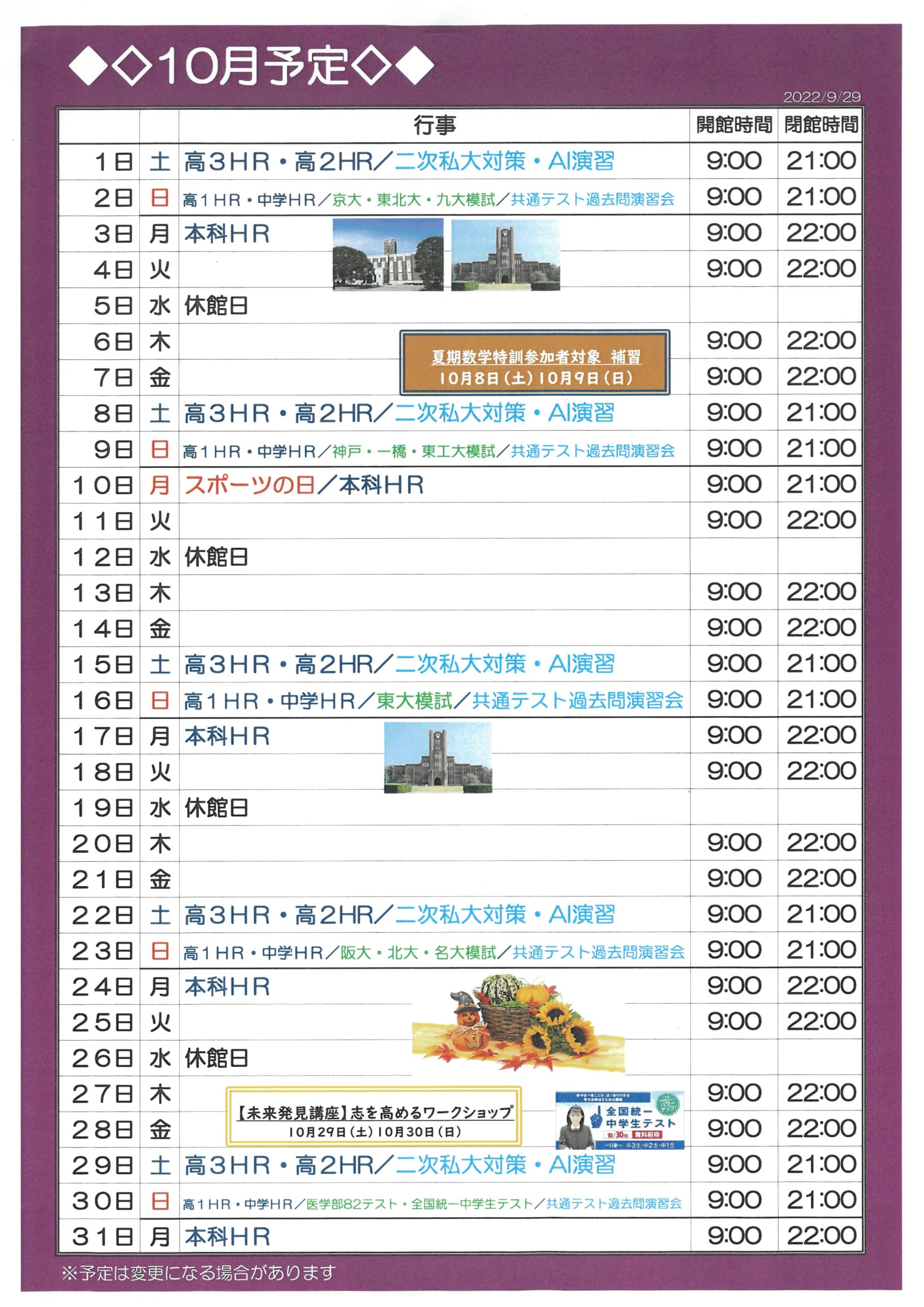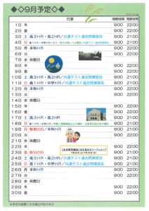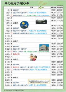 校舎スケジュール9月版 – 東進衛星予備校 大牟田有明町校/大牟田の大学受験予備校・学習塾