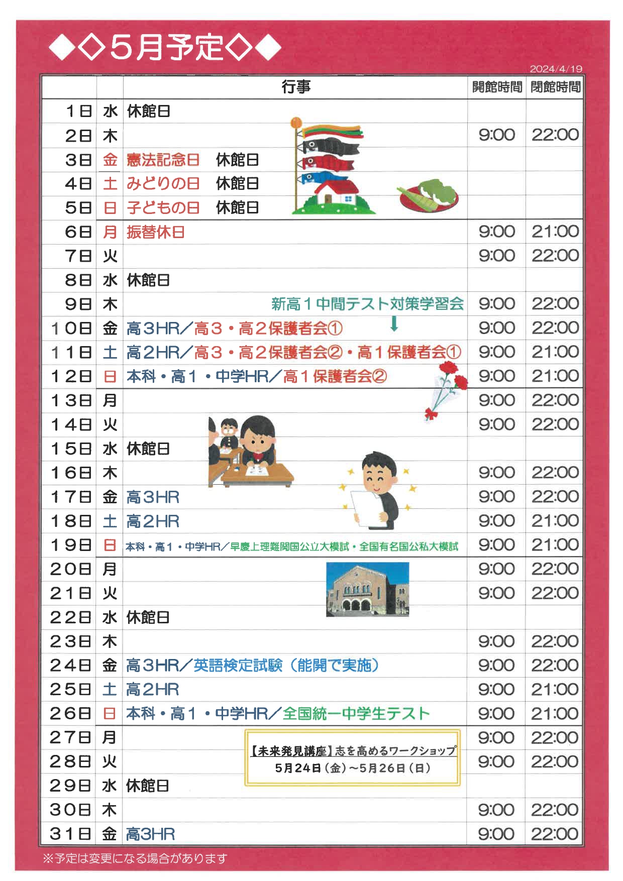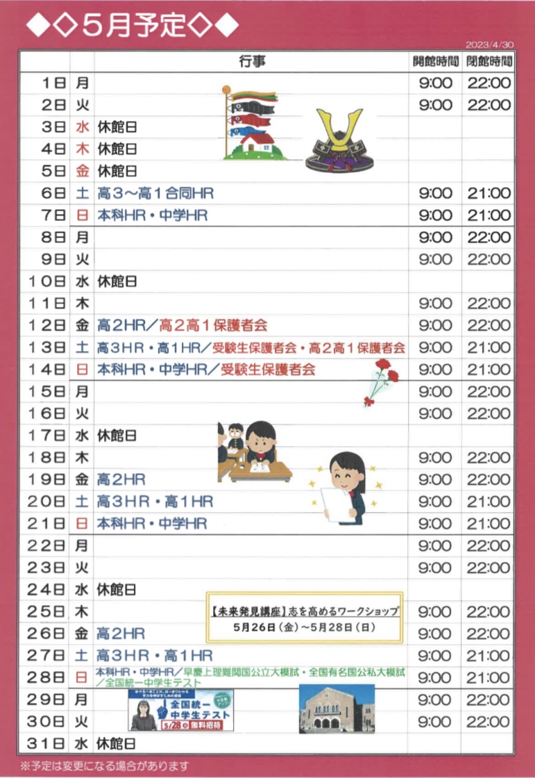 校舎スケジュール5月版 – 東進衛星予備校 大牟田有明町校/大牟田の大学受験予備校・学習塾