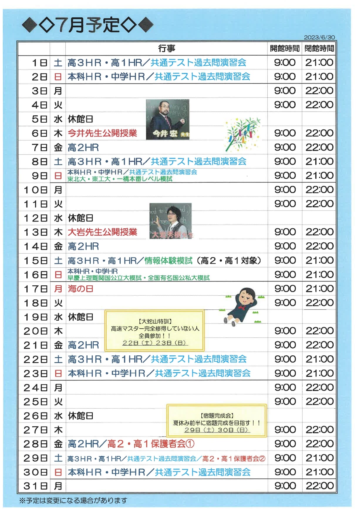 校舎スケジュール7月版 – 東進衛星予備校 大牟田有明町校/大牟田の大学受験予備校・学習塾