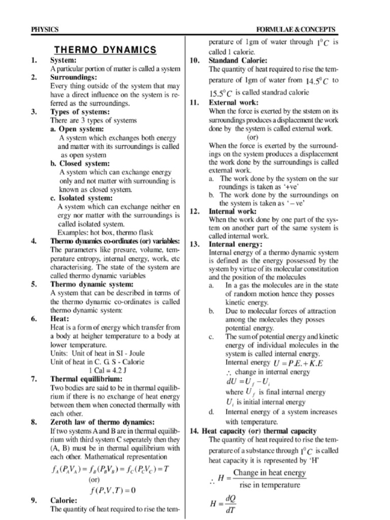 Physics Class 11 Formula Sheets - Thermodynamics FS | PDF | Heat ...