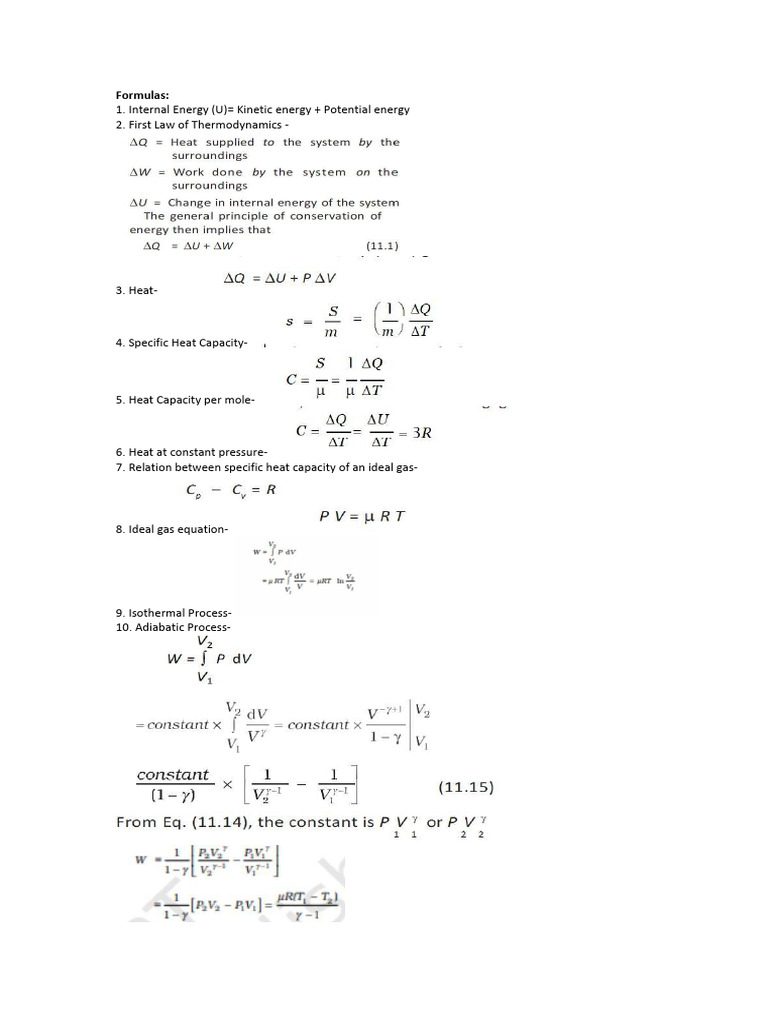 Class 11 Thermodynamics Formulas - Class 11 Thermodynamics – Formula ...
