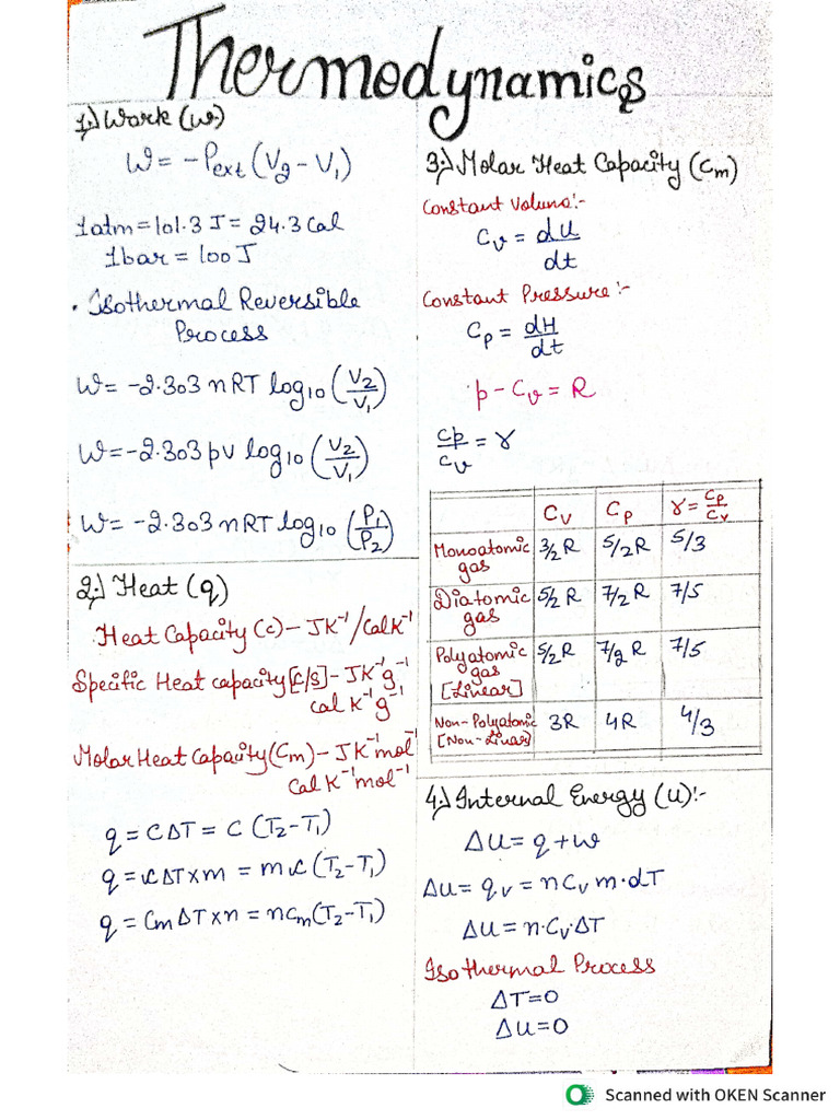 Here's A Formula Sheet For Thermodynamics (Class 11) Covering All ...