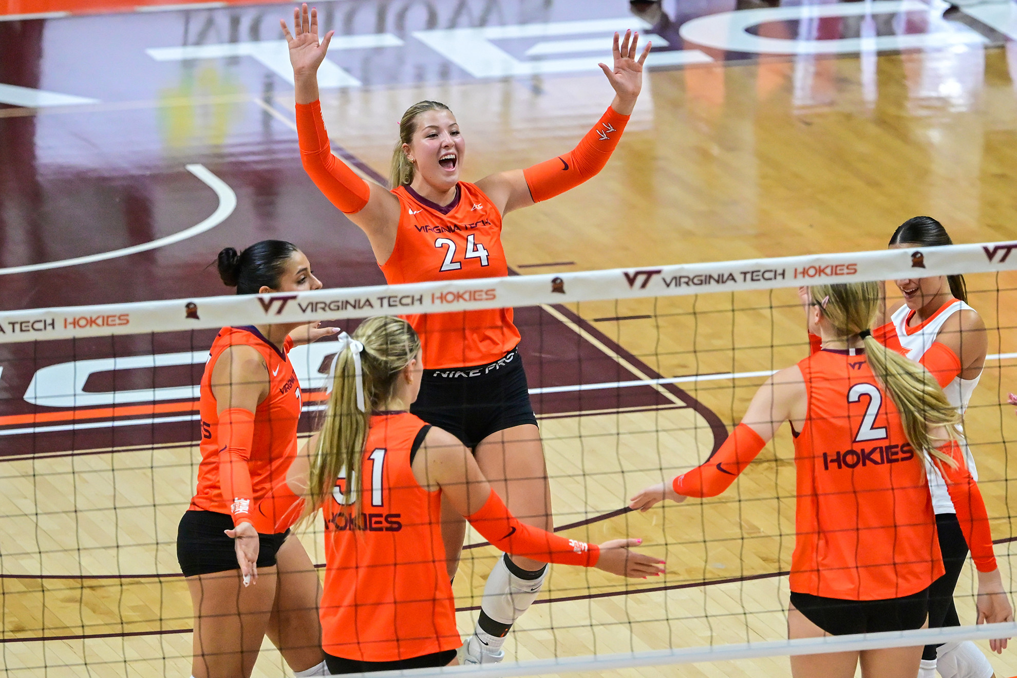 Hokies set four career-highs in four-set win over Rider - Virginia Tech ...