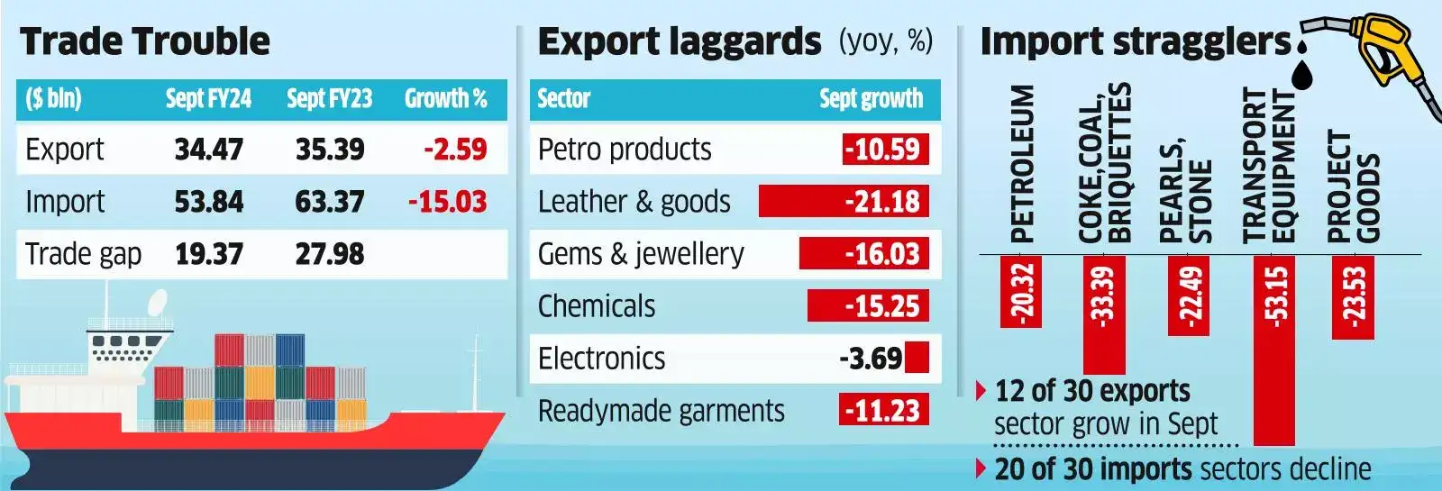exports: Sept goods exports dip 2.6%, growth seen in H2 - The Economic ...