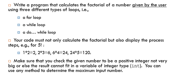 Solved - Write a program to calculate the factorial of a | Chegg.com