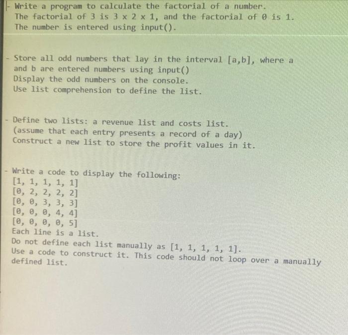 ***answer using pythin*** ***include indentation in the program if ...