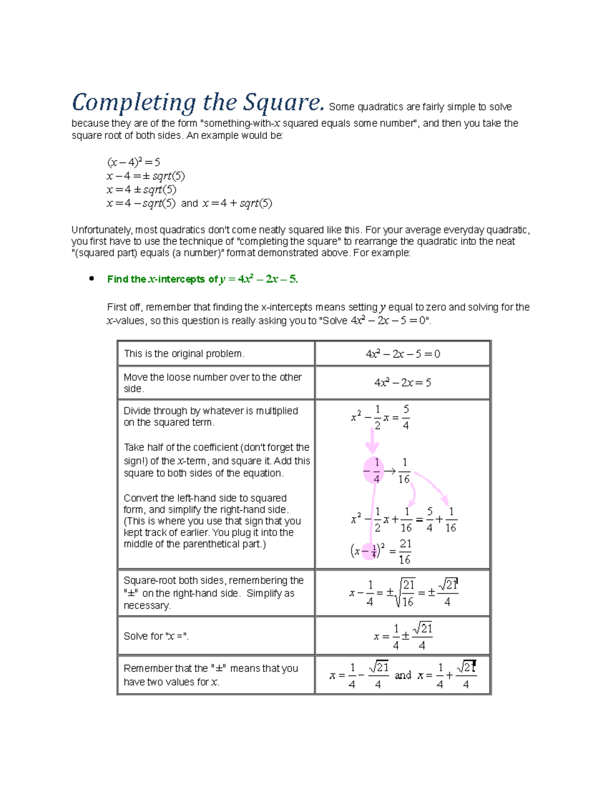 Lecture 28. Completing the Square - Completing the Square. Some ...