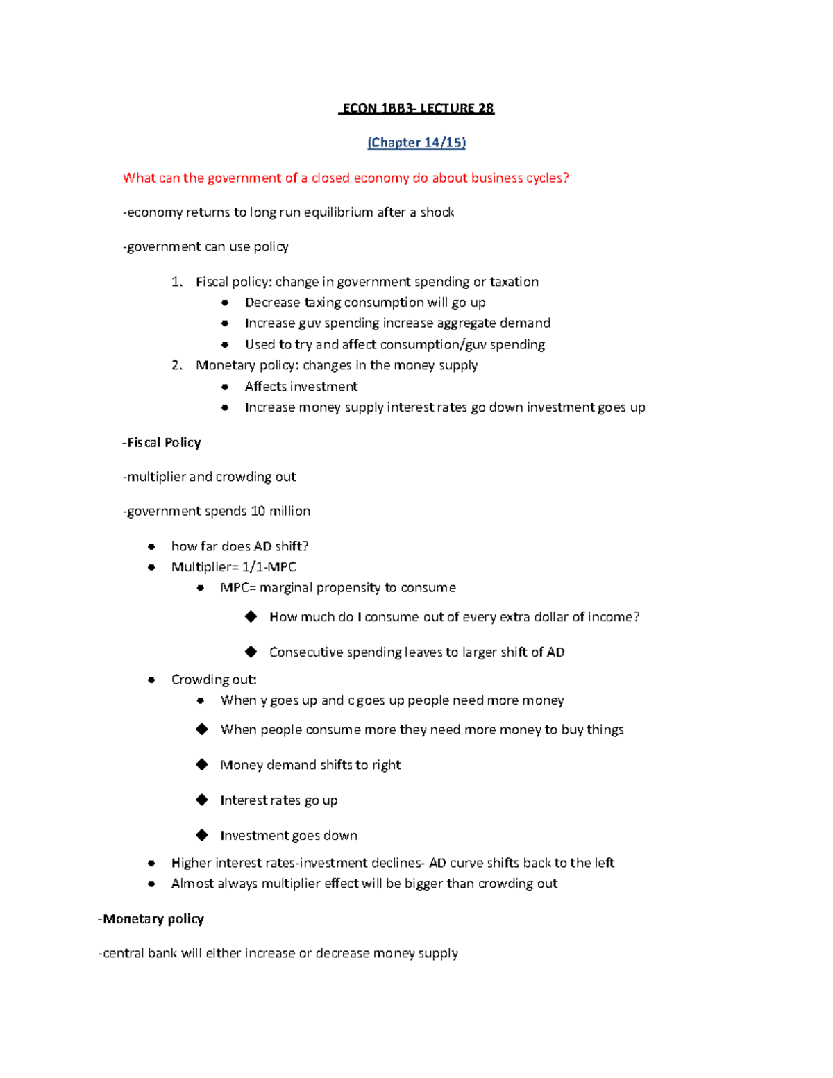 Lecture 28 - ECON 1BB3 - ECON 1BB3- LECTURE 28 (Chapter 14/15) What can ...