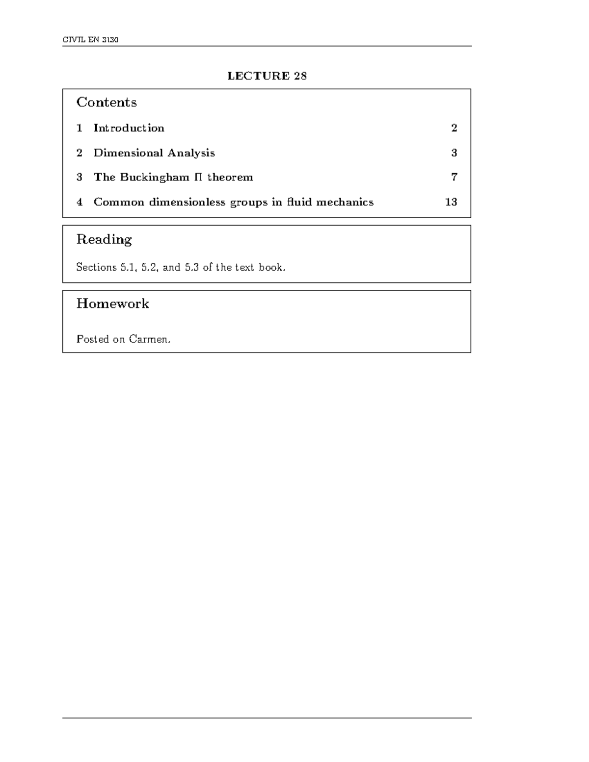 Lecture 28 - Dimensional Analysis, Buckingham Theory. Dimen - CIVIL EN ...