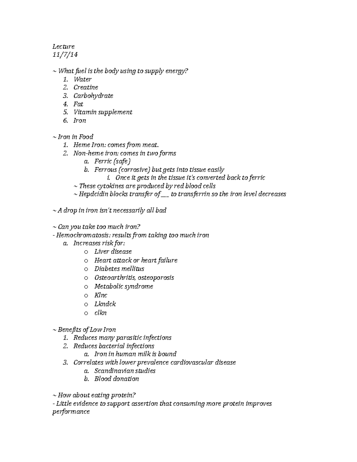 Lecture 28 - Lecture 11/7/ ~ What fuel is the body using to supply ...