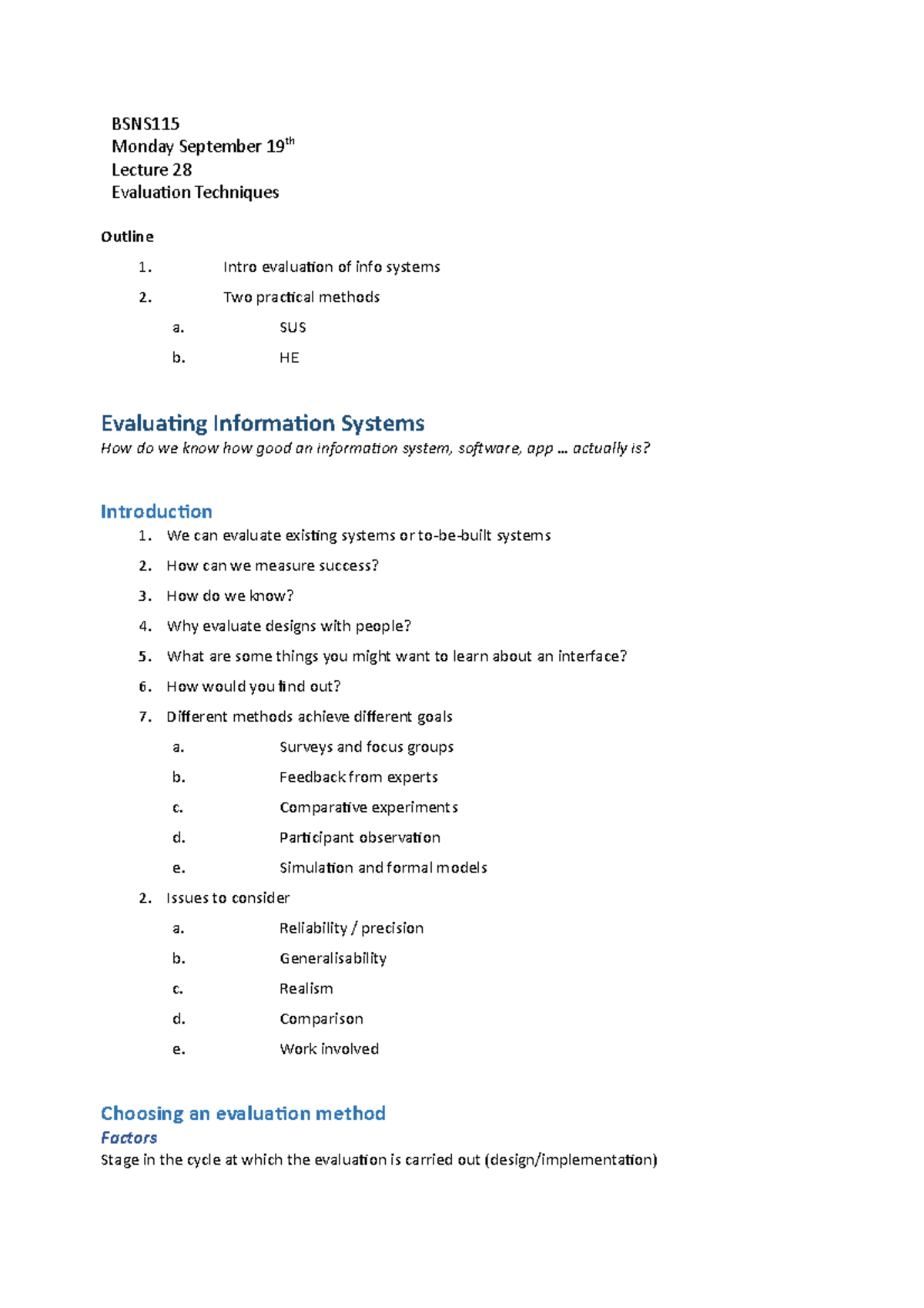 BSNS115 - Lecture 28 Notes - BSNS Monday September 19th Lecture 28 ...