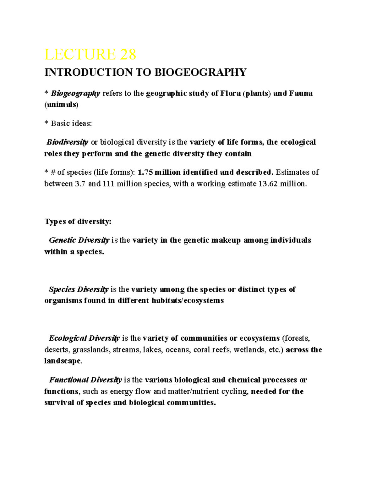 Lecture 28 - LECTURE 28 INTRODUCTION TO BIOGEOGRAPHY Biogeography ...