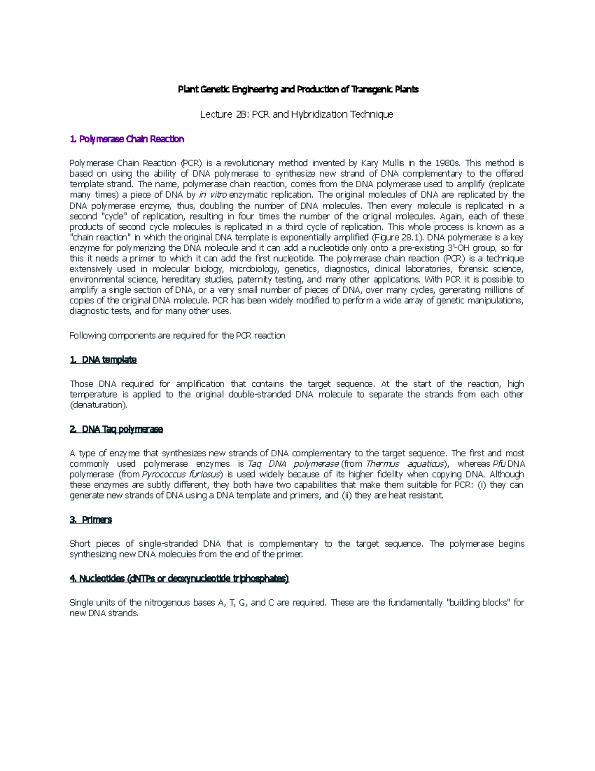 Lecture 28- PCR and Hybridization Technique - Plant Genetic Engineering ...