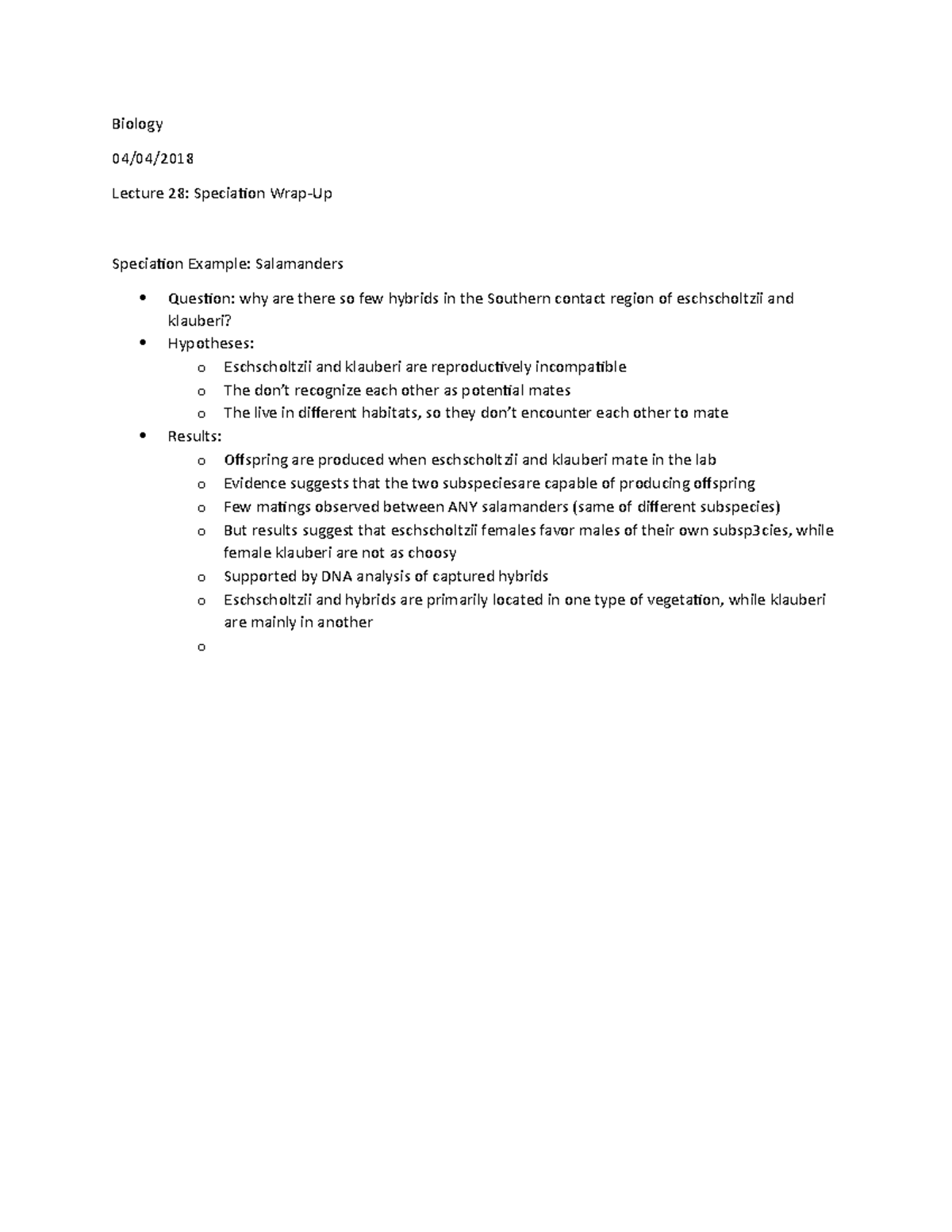 Lecture 28 Speciation Wrap-Up - Biology 04/04/ Lecture 28: Speciation ...