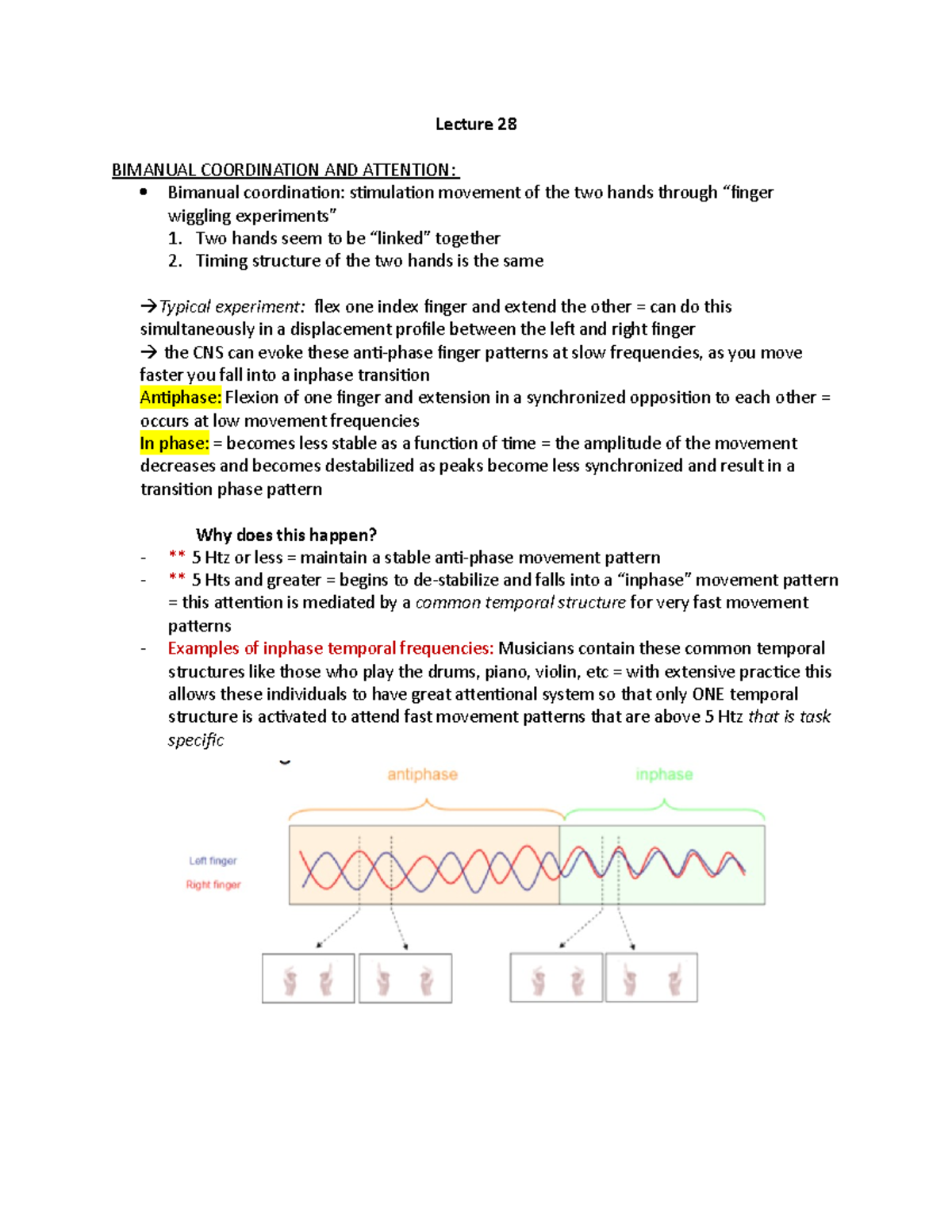 Lecture 28 Notes - Lecture 28 BIMANUAL COORDINATION AND ATTENTION ...