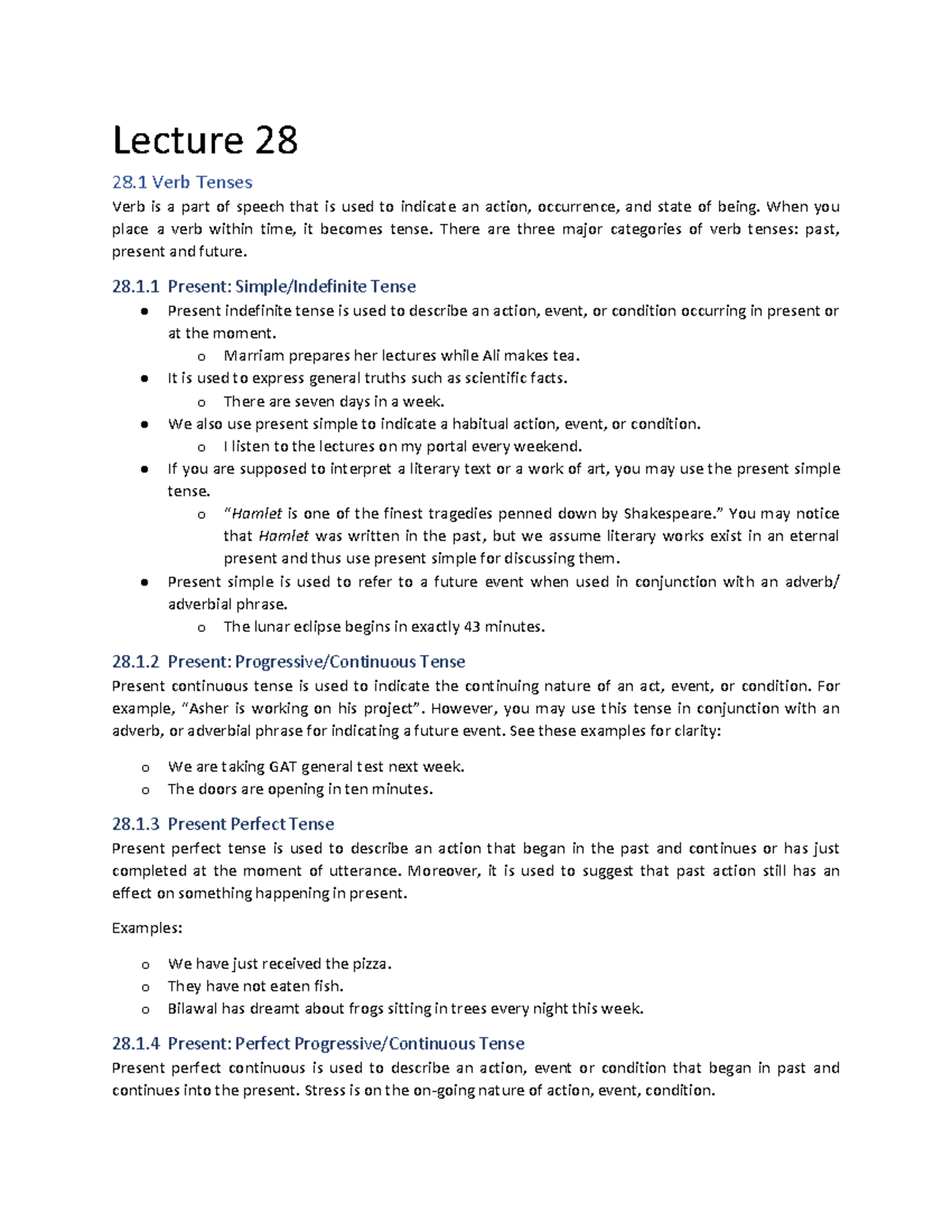 HUM102 Handouts Lecture 28 - Lecture 28 28 Verb Tenses Verb is a part ...