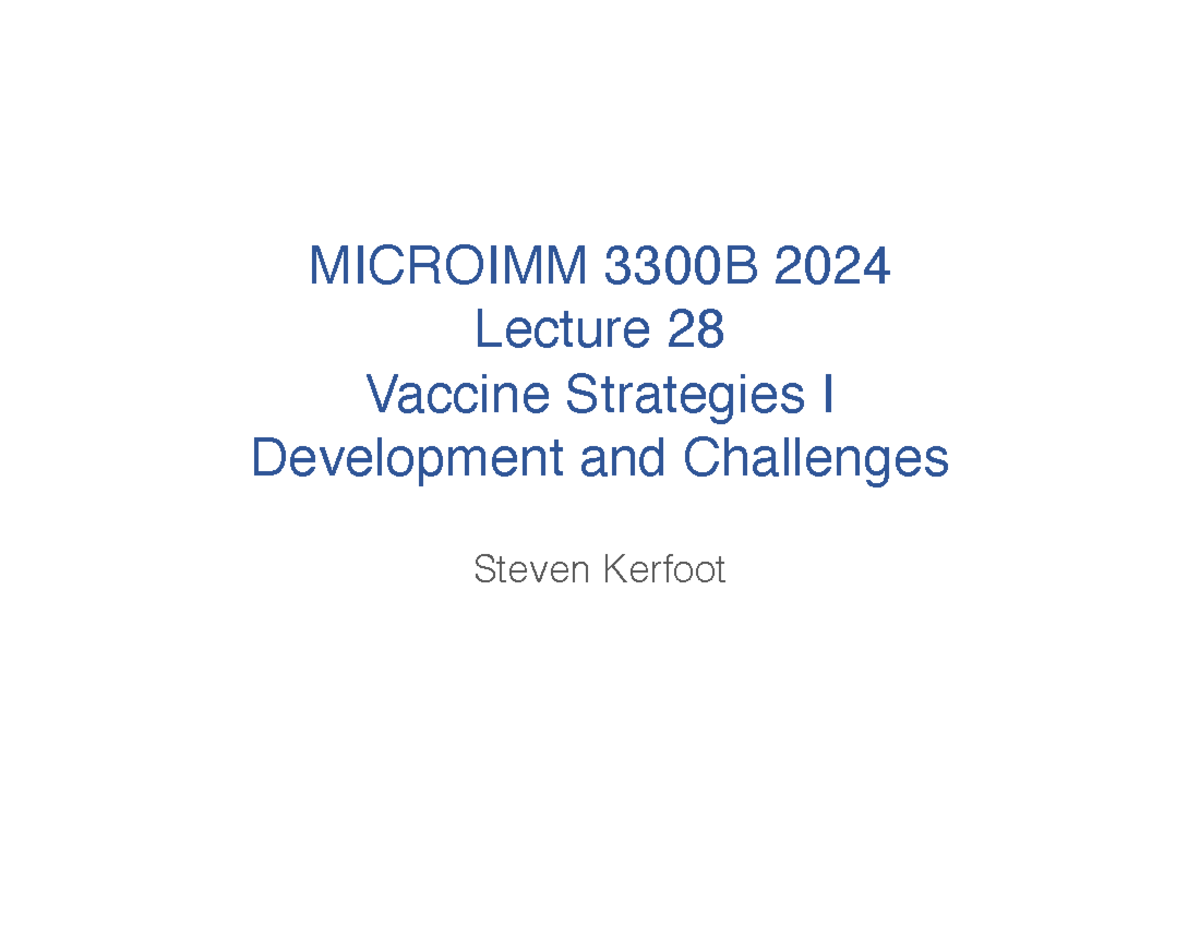 Lecture 28 Student Notes - MICROIMM 3300B 2024 Lecture 28 Vaccine ...