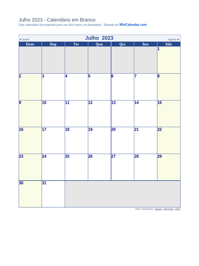 Calendario Julho 2023 | PDF