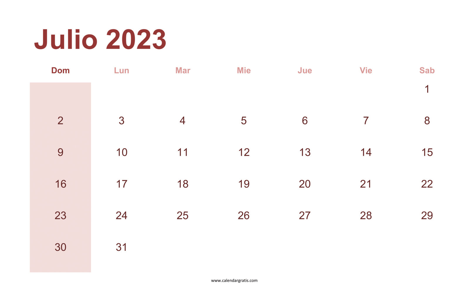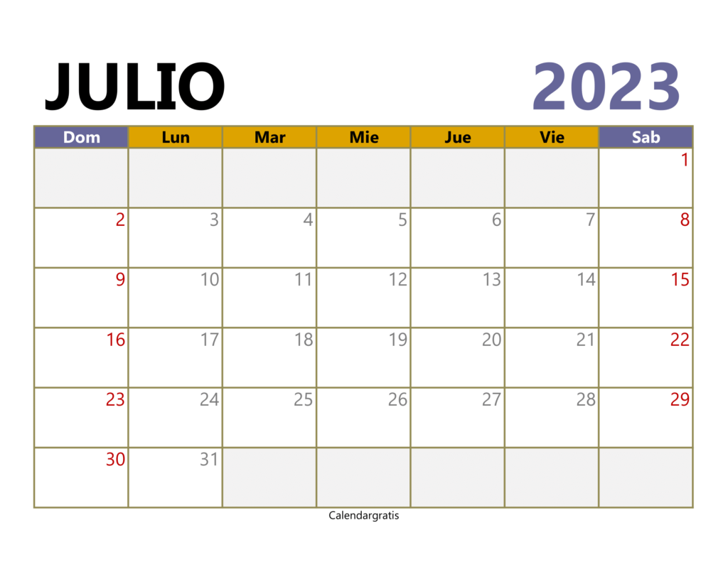 Calendario Julio 2023 Para Imprimir - Calendar Gratis