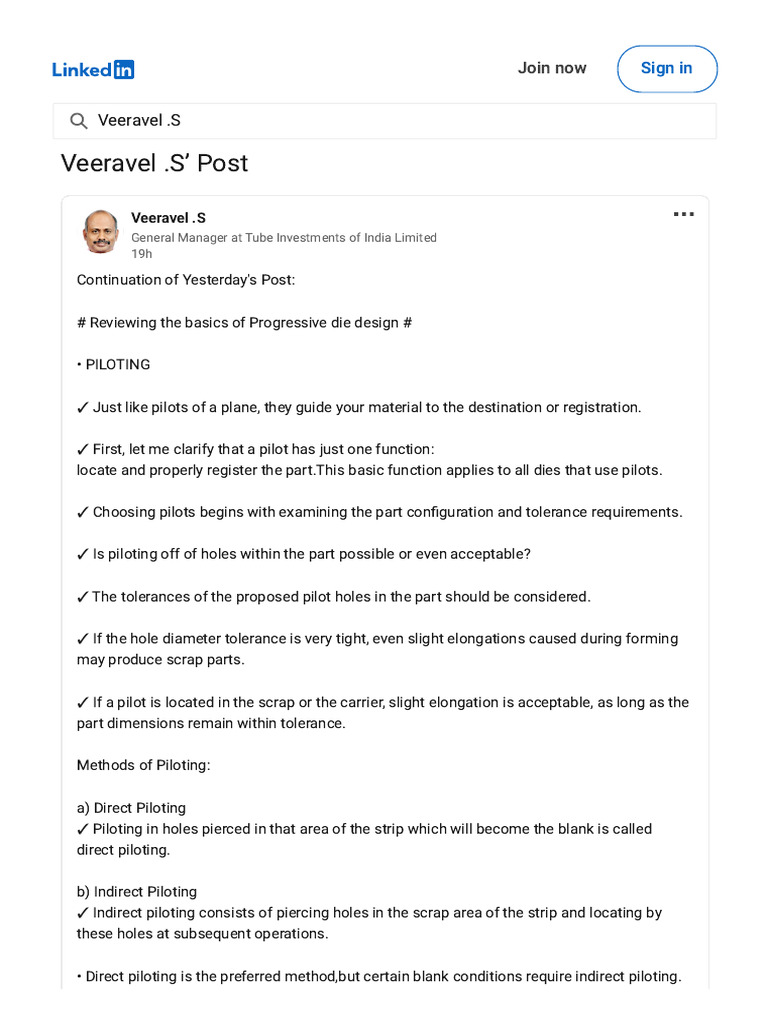 Veeravel .S On LinkedIn Continuation of Yesterday | PDF | Sheet Metal ...