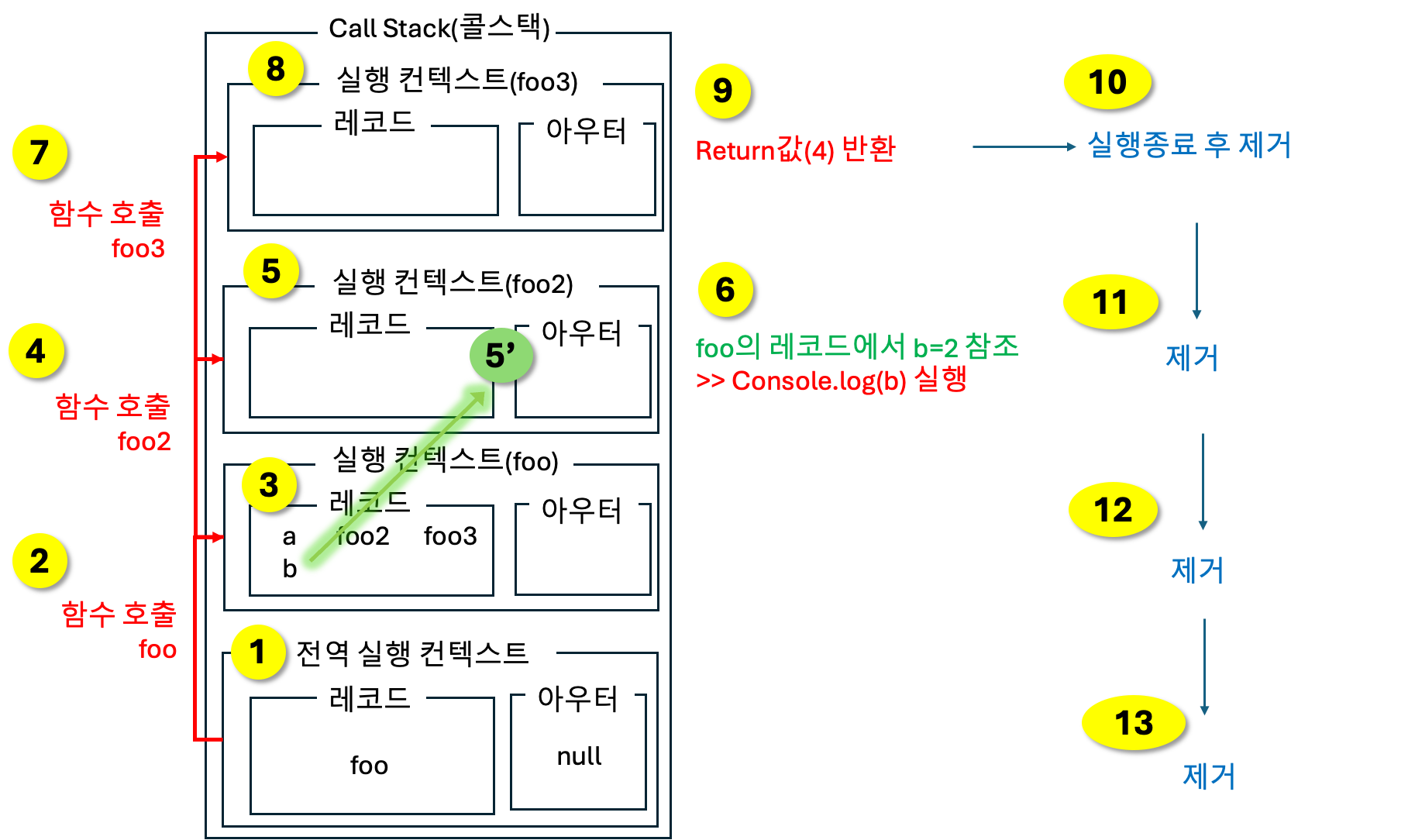 [Javascript] Javascript의 엔진1(메모리, 콜스택, 실행컨텍스트, 레코드, 아우터)