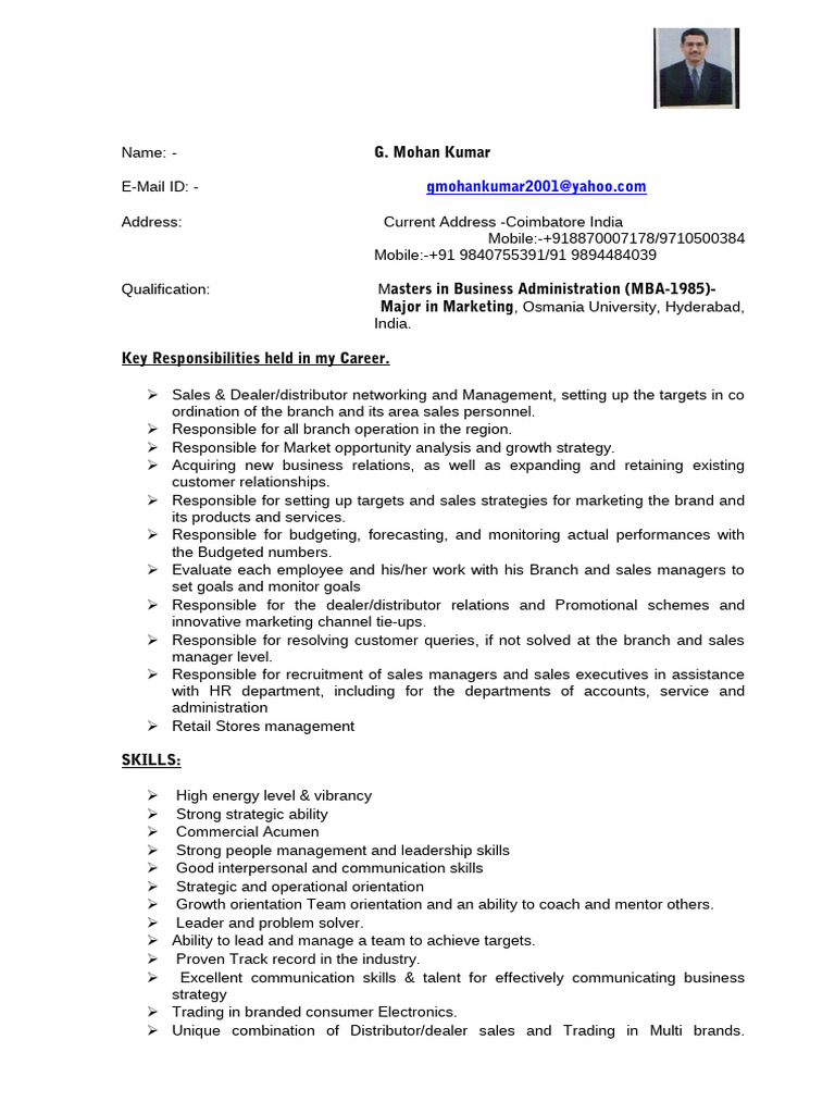 Mohan Kumar - Resume | PDF | Sales | Marketing